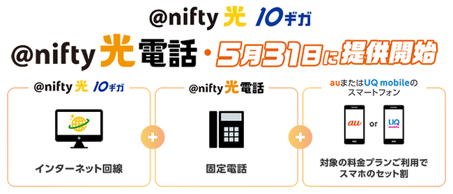 ニフティ、「@nifty光 10ギガ」における「@nifty光電話」を提供開始~「@nifty光 10ギガ」とのセット利用でauスマートバリューや自宅セット割の適用が可能~