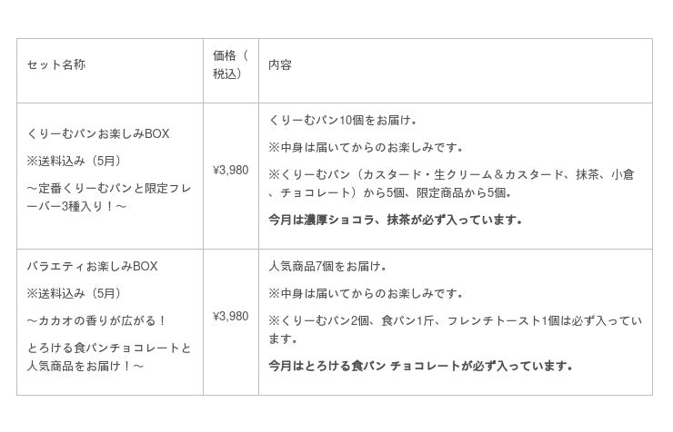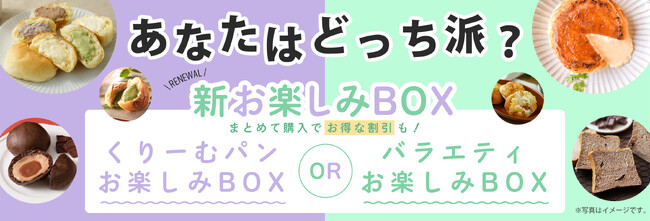 『お楽しみBOX』は、くりーむパンのみを楽しみたい方向けの「くりーむパンお楽しみBOX」と、「バラエティお楽しみBOX」の2種類のラインナップで、今年3月よりリニューアル販売を行っています。