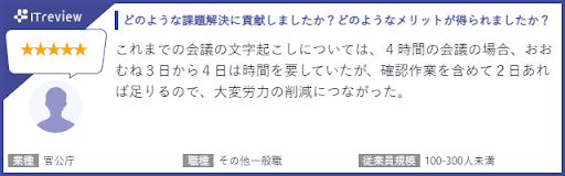 もじこは音声認識の部門で「Leader」を受賞しました。「Leader」は、レビュアーによる満足度評価と市場の認知度を可視化した「ITreview Grid」の中で認知度高く、ユーザー満足度も高い評価の製品に与えられるものです。もじこについて「ITreview Grid」内で、「苦痛から解放された」「業務の効率化・時間短縮に大きく貢献!」「もじおこしの決定版」など、お客様満足度の高いレビューを頂戴しており、お客様から大変ご好評をいただいていたことから今回の受賞に至りました。