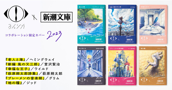 2021年の第一弾時に大好評だった『老人と海』/ヘミングウェイ、『新編 風の又三郎』/宮沢賢治の再販売に加え、新たに『幸福な王子』/オスカー・ワイルド、『萩原朔太郎詩集』/萩原朔太郎、『ブレーメンの音楽師』/グリム、『地の糧』/アンドレ・ジッドの4作を加えた全6冊で限定コラボカバーで展開中。