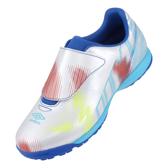 特徴:サッカーをはじめる子どものために企画をしたシューズ。小学生専任コーチ監修のもと、止める・蹴る・運ぶのボールタッチをカラーで覚えられるように色分けしました。