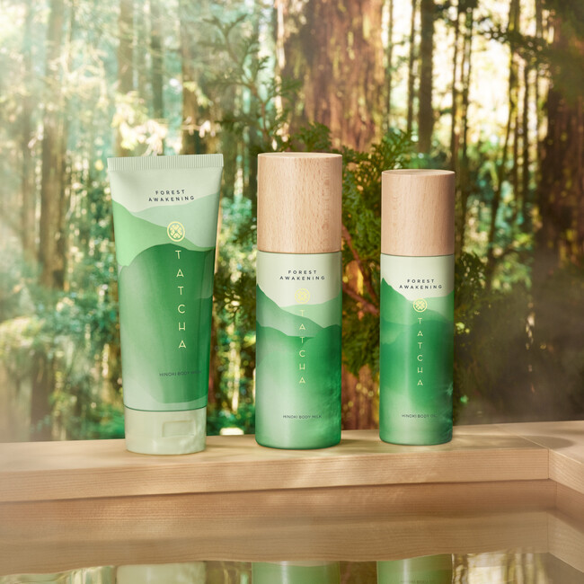 忙しい毎日こそ、穏やかでゆったりとした気分へ導くヒノキの香りと、植物由来の成分、タッチャ独自のうるおいの発酵液<HADASEI−3>※1配合の「フォレスト アウェイクニング ボディケア コレクション」を使ったくつろぎのボディケアリチュアルで、おうち時間を充実のホームスパに。夜の安らぎのバスタイムにはもちろん、いつもより少し早く起きた朝は、一日を乗り切るためのリチュアルでスタートしてみませんか。