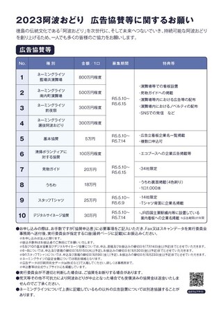 令和5年5月10日(水)から、2023阿波おどり広告協賛の募集を開始します。