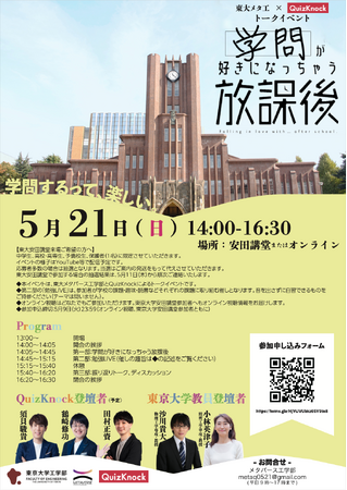 クイズ王・伊沢拓司率いるQuizKnockと東大メタ工のコラボトークイベント「学問が好きになっちゃう放課後」が5月21日(日)開催決定!