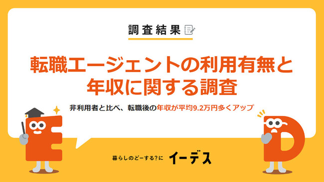 株式会社エイチームのグループ会社である株式会社エイチームライフデザイン(本社:愛知県名古屋市、代表取締役:間瀬文雄)は、暮らしの「まよい」を解決する情報メディア「イーデス」にて、直近3年以内に転職をした20代~50代の約3,000名を対象に「転職エージェントの利用有無と年収に関するアンケート調査」を実施しました。