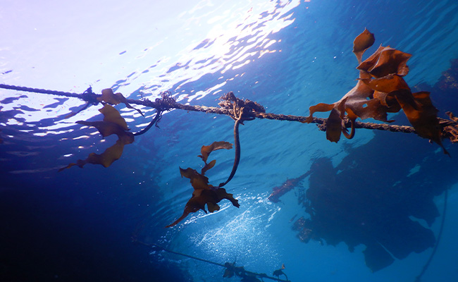 マリーナ内での藻場再生に挑戦しているリビエラ逗子マリーナ藻場再生場を特別にご案内します。近年、温暖化などが原因で磯焼けが進行し、全国的に魚の住みかとなるべき藻場が急速に消失していることが問題になっています。そこで、ブルーカーボンベルト・リビエラ研究所では藻場の再生をベルト状につなげる「ブルーカーボンベルト」を提唱すると共に、試験研究としてリビエラ逗子マリーナとリビエラシーボニアマリーナにおいて早熟カジメの育成を行っています。