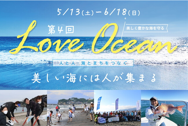 神奈川県と神奈川県沿岸13市町との連携で開催する「第4回LOVE OCEAN」の期間中、海岸美化活動のほか、クリーンを掲げたセーリング・フィッシング・ビーチバレー・ラグビー・サイクリング・ランニングなどのスポーツ、地元の観光紹介、海の未来を語り合う「海のシンポジウム」 と、さまざまな取り組みを行います。
