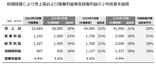 などの重点施策により、売上利益について2桁成長を継続する計画です。