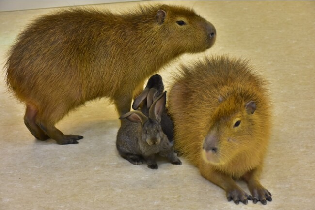 カピバラ、ワオキツネザル、キンカジュー、フタユビナマケモノ、ミーアキャット、フレミッシュジャイアント、パンダマウス、メンフクロウなど