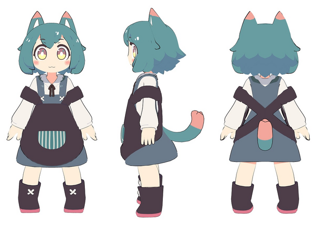 今回坂本アヒル先生デザインのアバターという事で、シンプルながらも特徴的な画風をVR上でも楽しんでいただけるよう造形させていただきました。
