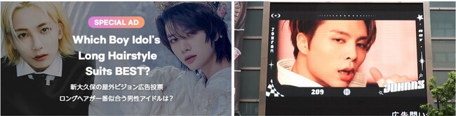 2023年4月19日(水)から5月2日(火)までの期間で開催した、「ロングヘアが一番似合う男性アイドルは?」の投票において1位に選ばれたNCTのJOHNNYさんの応援広告が、新大久保のK-PLAZA 1号館の屋外ビジョンで上映されます。