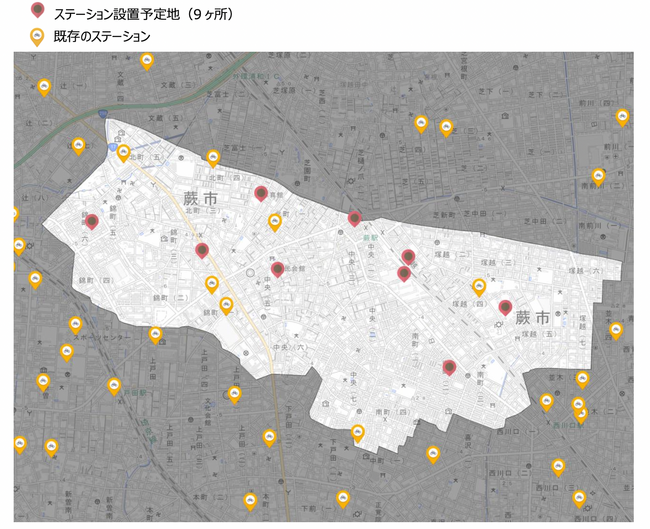 ■蕨市のステーション設置予定地と周辺エリアのステーション展開状況