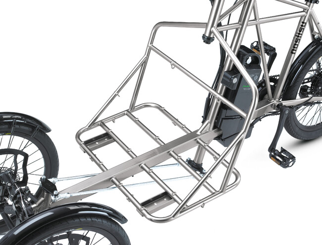 ・低い位置に装備されフレームに直結し重量物積載時でも安定したハンドルに貢献する荷台構造