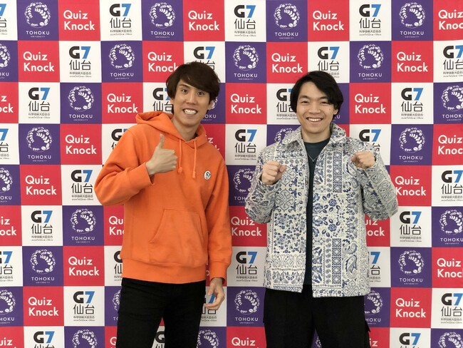 東大クイズ王・伊沢拓司率いるQuizKnockは、G7仙台科学技術大臣会合とのコラボイベント『伊沢拓司・須貝駿貴が語る「科学」とクイズで学ぶ「G7」』を4月16日(日)に東北大学川内南キャンパスで行いました。