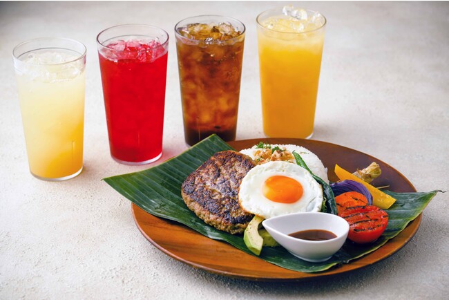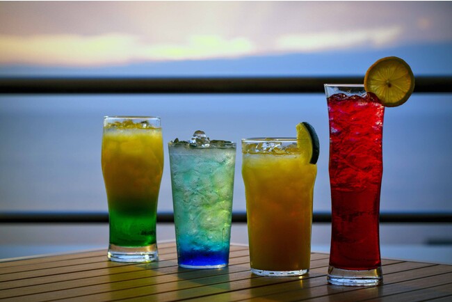 くオープンテラスです。ご家族でもお楽しみいただけるよう、お子様にはロコモコプレートをご用意。ドリンクは、シーブリーズやチャイナブルーをはじめとした10種のカクテルや梅酒などをフリーフローでお楽しみいただけます。お食事とドリンクを片手に夏の夜風を感じながら花火を鑑賞するくつろぎの時間をお過ごしください。