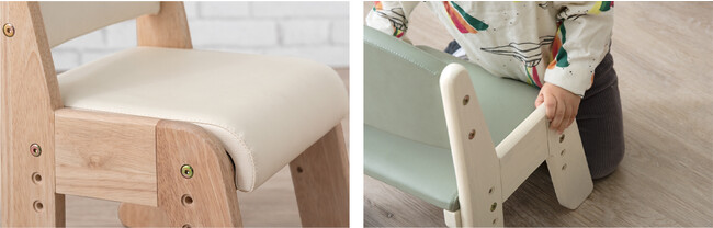 未就学児向けのデスクチェアセットの座面はクッション性のない素材が使われているものを多く見かけます。本製品は座面と背もたれ両方にウレタンを使用しているので適度なクッション性があり、座り心地も良くなっています。