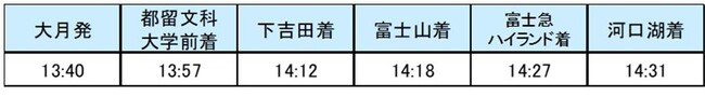※下り大月駅~河口湖駅間は同時間帯に運転している「フジサン特急11号」を置き換えて運転します。このため「特急富士回遊71号、72号」の運転日には「フジサン特急11号」の運転はございません。あわせて「フジサン特急12号」は車両運用の都合上、一般車両(全車自由席)での運転となります。
