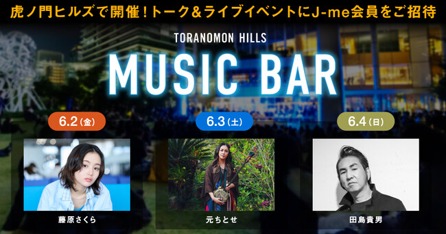 ラジオ局J-WAVE(81.3FM)は、6月2日(金)~4日(日)の3日間、虎ノ門ヒルズとタッグを組み、フリーライブ「TORANOMON HILLS “MUSIC BAR” produced by J-WAVE」を開催いたします。このイベントに、J-WAVEリスナーをご招待いたします。