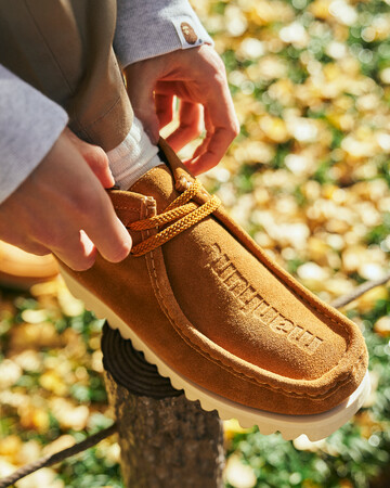 クラシックなアッパーに、Vibram製のシャークソール(サメの歯のような形状)を組み合わせた革新的なシルエットで、履き心地の良さと耐久性を兼ね備えた現代的な一足に仕上がっています。