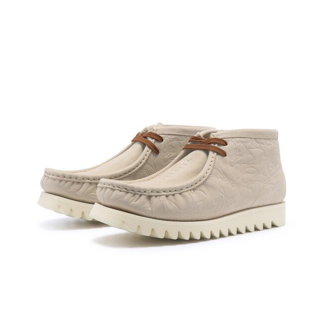 昨年、7年ぶりにブラックとベージュを復刻し、今シーズンは新たにブラウンとオリーブが加わりました。さらに、アッパー全体に「ベイプカモ」を型押ししたベージュとブラウンの2型もラインナップし、バリエーション豊かに展開します。