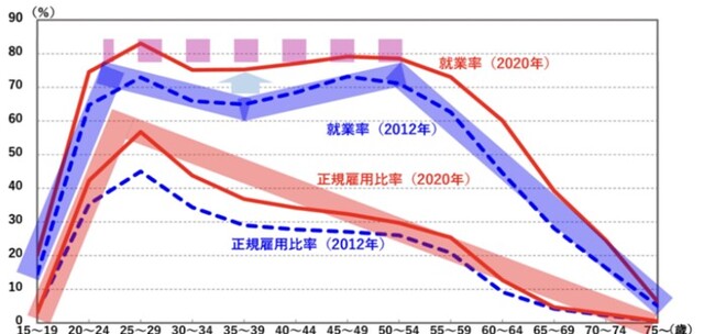 宮城県では、「L字カーブ」と言われる20代後半以降の女性の正規雇用就職率が低下する状況*を改善し、出産・育児で離職した子育て期の女性が仕事と家庭を両立しながら、自らの能力を発揮し安定的な雇用のもとで働く環境を提供することを目指しています。