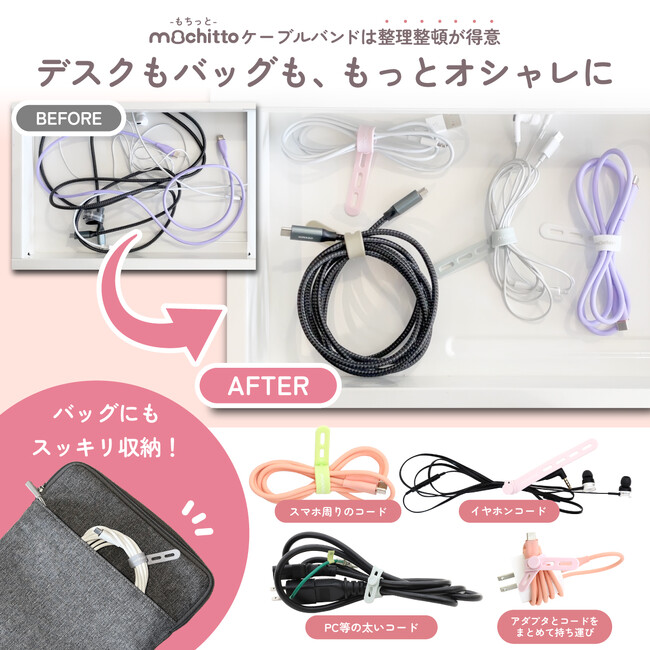 整理整頓をおしゃれに!次世代結束バンド「もちっとケーブルバンド」