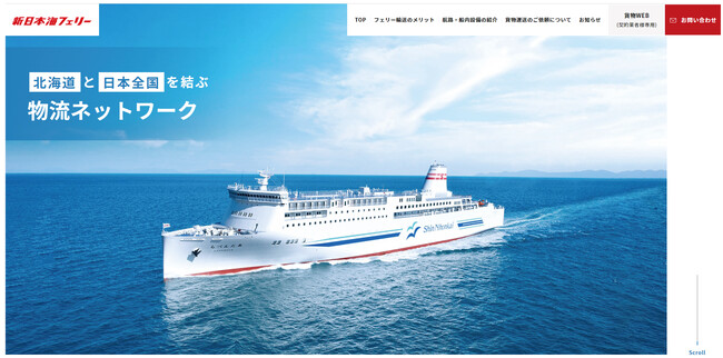 舞鶴-小樽、敦賀-苫小牧東、新潟-小樽、敦賀-新潟-秋田-苫小牧東を運航する新日本海フェリー株式会社(本社:大阪府大阪市、代表取締役社長:入谷泰生)は、この度、貨物ホームページを全面リニューアルしました。今回のリニューアルでは、新日本海フェリーの魅力を見やすく、分かりやすくお伝えするホームページに改善して、モーダルシフトや物流業界の2024年問題の課題解決に役立つ情報を掲載しています。