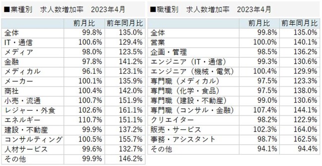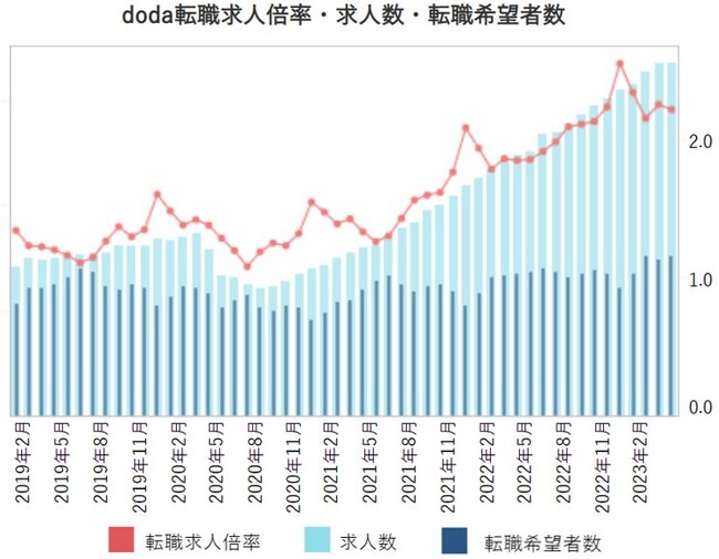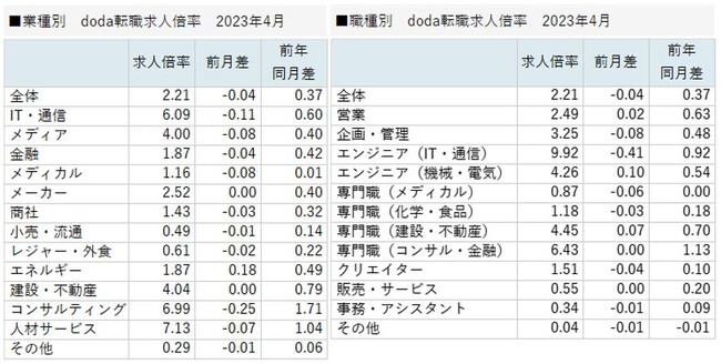 パーソルキャリア株式会社が運営する転職サービス「doda(デューダ)」(編集長:加々美 祐介)は、2023年4月の転職求人倍率をまとめた「doda転職求人倍率」を発表いたします。