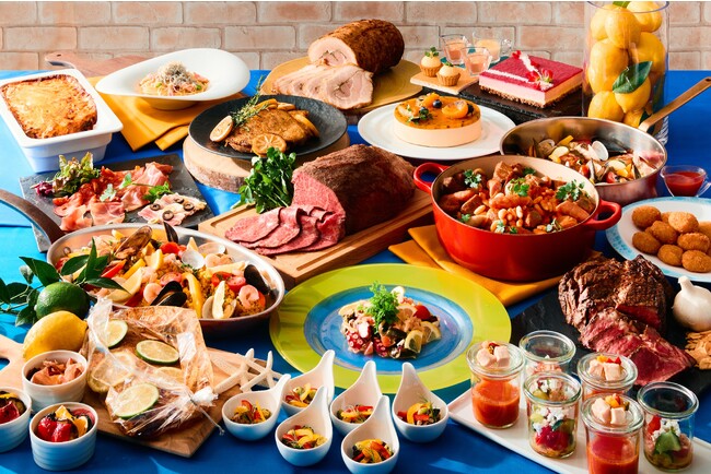 今回のビュッフェでは、イタリアの「カポナータのショートパスタ」やスペインの冷製スープ「ガスパチョ」、南フランスの煮込み料理「カスレ」など、トマトやレモン、ズッキーニや白インゲンなどの彩り鮮やかな野菜や、魚介類、オリーブオイルを使用したお料理をラインアップ。地中海の澄んだ青い海を思い浮かべながら味わってはいかがでしょうか。