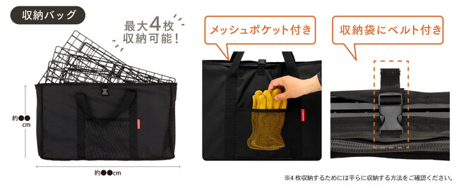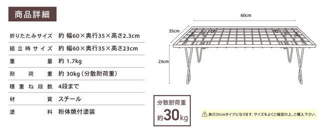 2枚重ねると脚が枠内に収まるのでコンパクトに収納出来ます。また奥行約35cmでテント内にも置けるちょうどいいサイズ!※専用バッグ付きも販売中