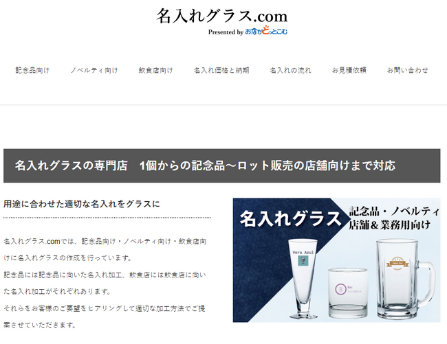 記念品・ノベルティの制作を手掛ける「お店がどっとこむ」を運営する企業として、新たな展開をお知らせいたします。この度、名入れグラス加工に特化した専門のECサイトを正式にローンチいたしました。