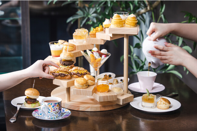 ご宿泊時はもちろん、お買い物やデート、小規模パーティのほか、日常使いから特別なひとときまで、多様なシーンでお使いいただける昨年11月にリニューアルオープンした「TERRACE & DINING ZERO」よりアフタヌーンティーが登場します。「トロピカル」をテーマに夏にぴったりの色鮮やかなメニューを揃えました。マンゴーとパッションフルーツのジュレを中に閉じ込め、細い糸状のマンゴークリームを重ねた「マンゴーモンブラン」やメロンピューレとホワイトチョコを混ぜ合わせた生地の上にメロンと紅茶、レモン風味のクラッシュゼリーをのせ、爽やかに仕上げた「メロンブラン・マンジェ」、ごろっと果肉が入った濃厚なマンゴーが味わえる「マンゴープリン」などをご用意。また、セットのドリンクはブラックティーやハーブティーなどロンネフェルトの紅茶12種をフリードリンクでご提供します。ご友人同士、カップルで素敵な午後のひとときをお楽しみください。