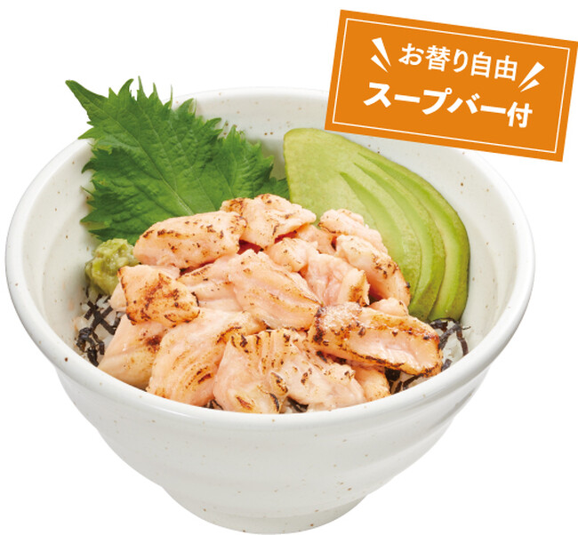 バーナーで炙ったサーモンハラスをライスに乗せ、アボカドや大葉を添えました。