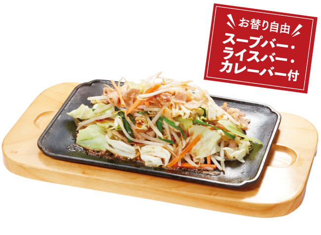2/3日分の野菜※と豚バラをにんにく風味の特製だれで炒めた「スタミナ鉄板焼き」が登場します。