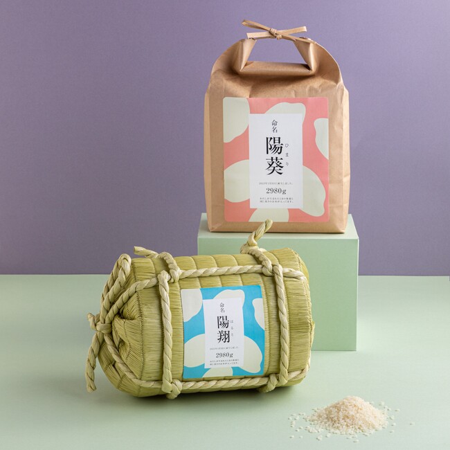 デザインにこだわったオリジナルお米ギフト“福づくし”の「名入れ俵米」、「お米で赤ちゃん」