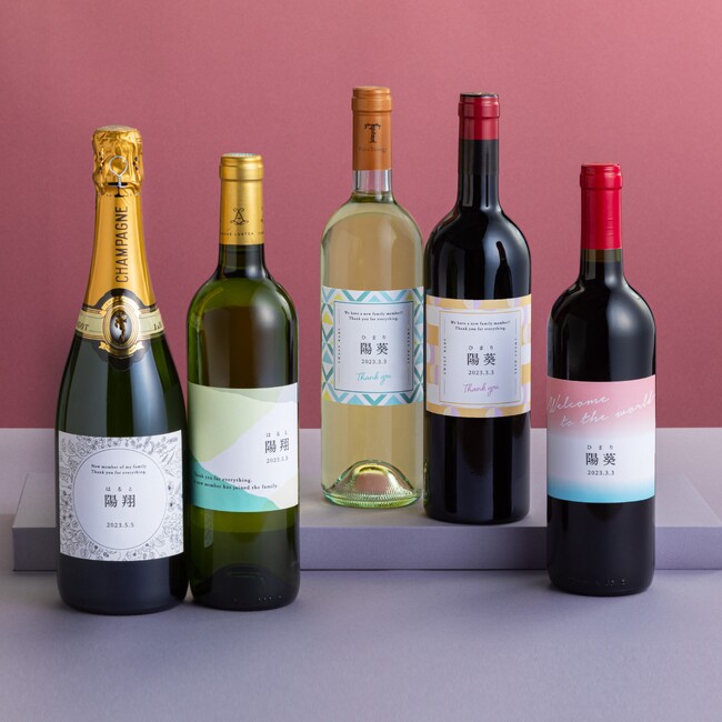 ワインを飲みながらベビーの名前を覚えていただけるオリジナルラベルの名入れワインセット(各種)