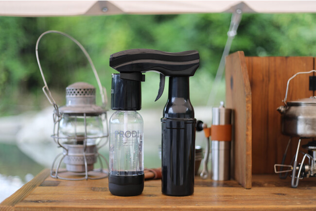持ち運び可能な炭酸水メーカー。水だけでなく、ジュースや日本酒、ワインなど好みの飲み物に炭酸を注入できます。