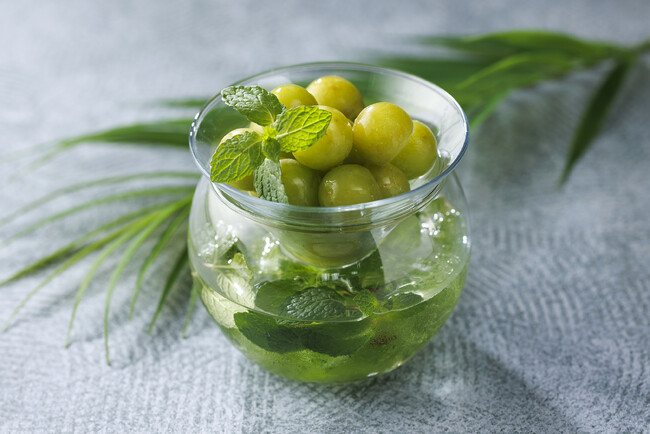 パッションフルーツの酸味とパイナップルの甘味が心地よい「PINEAPPLE RESORT」は、サングラスやミニパラソルなどの飾りをご用意し、お好みで飾り付けてもお楽しみいただけます。シャインマスカットとともにお召し上がりいただく「SHINE MOJITO」は、暑い夏にぴったりな爽やかな味わいのカクテルです。バーテンダーの遊び心とともに至福の一杯をご堪能ください。