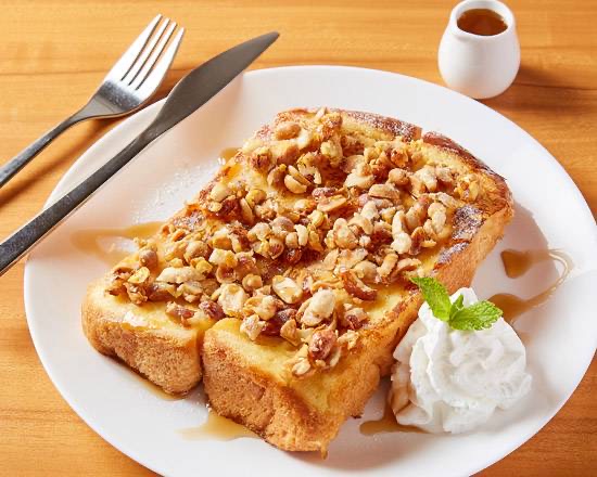 厚切りの食パンをじっくりと一晩漬けこみ、銅板で10分程度ふっくら焼き上げるため中はふわふわのプリンのような食感です。