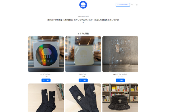 公式ECサイト「透明書店 Web Shop」URL:https://tomei-boookstore.square.site/
