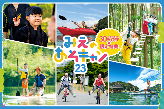 目的とした県内の遊び体験が30%OFFで利用できる「みえのあそキャン23 」