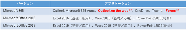 FormsおよびOutlook on the web をはじめ、Microsoft 365の主要アプリケーションの機能や操作方法を習得できるテキスト提供することで、お客さま企業におけるMicrosoft 365の利活用を促進します。