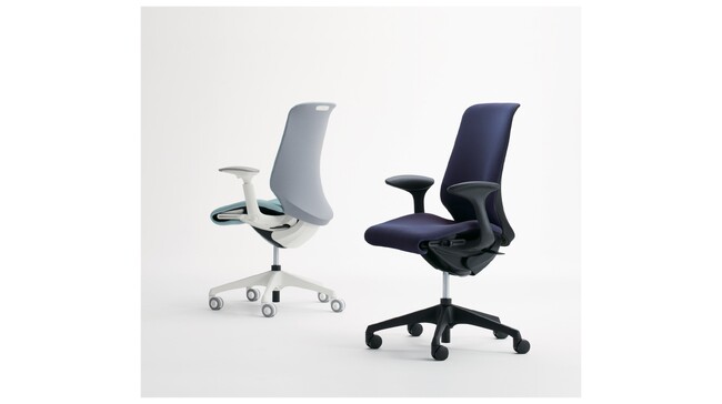 「スフィア」は、2021年11月に国内で発表(2022年3月発売)した必要最小限の調整で身体にフィットするタスクシーティングです。オカムラ独自の「3Dフィジカルフィットシェル」により、座る人の体格に合わせて背もたれと座面が身体を包み込むように変形し、自然と身体にフィットします。イスと身体が接する面積が広くなるため、身体にかかる圧力が適切に分散され、血流が圧迫されず長時間座っても疲れにくくなっています。