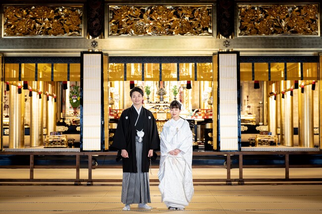 和装・洋装を問わず、お二人の記念写真や前撮り、ご親族での集合写真撮影が可能です。