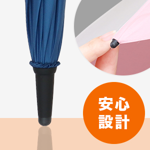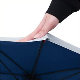 ゴルフ傘の先端にはゴム性素材、雨の滴るつゆ先には丸みを持たせ、お子様への安全面や、車などに積み込む際や、傘を入れる際にも傷や怪我がない様にと考えられた形状です。荷物の多いゴルファーにもママさん世代にも安心してご利用頂ける様に配慮されております。
