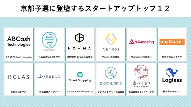 今回の京都予選のみで135社を超えるスタートアップから応募があったため、書類選考通過12社をファイナリストとして、7月6日(木)に京都大学百周年記念ホールにて開催される京都予選に登壇いたします。