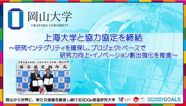 【岡山大学】上海大学と協力協定を締結 ~研究インテグリティを確保し、プロジェクトベースで研究力向上・イノベーション創出強化を推進~