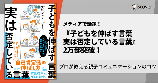 株式会社ディスカヴァー・トゥエンティワン(本社:東京都千代田区、取締役社長:谷口奈緒美)は2023年3月25日刊行の『子どもを伸ばす言葉 実は否定している言葉』(天野ひかり・著、とげとげ。・マンガ)を増刷、2万部を突破しました。