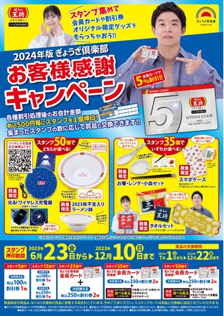 【2024年版ぎょうざ倶楽部 お客様感謝キャンペーン】実施のお知らせ ~毎回割引になるお得な会員カードや餃子の王将オリジナル限定グッズをもらえるチャンス!!~