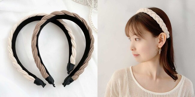 ぷっくりとした編み込み風のカチューシャは上品なスタイルにもカジュアルスタイルにもお使いいただけます。